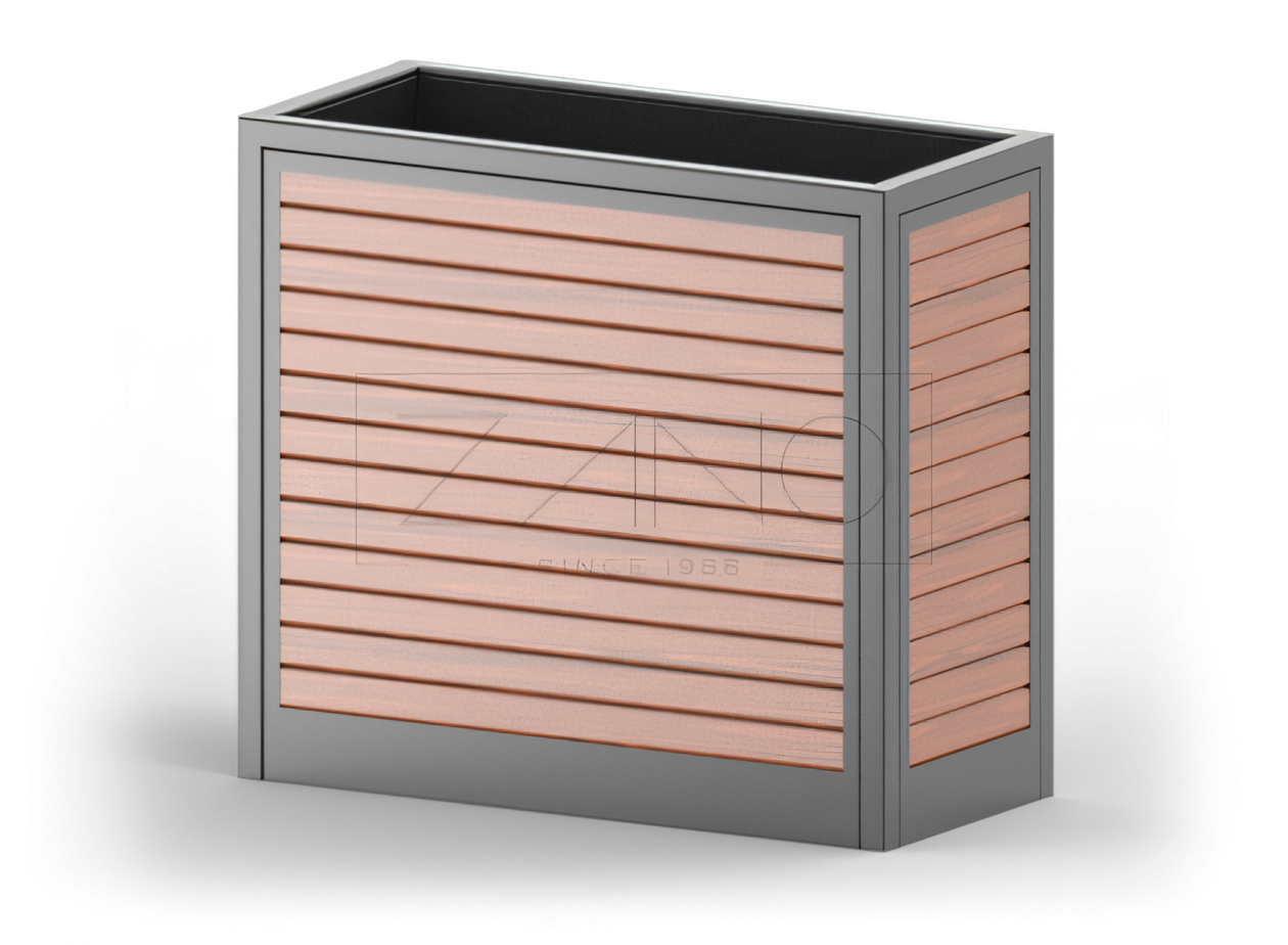 The Salver collection features four differently sized planters designed to meet public needs. Salver offers straightforward yet versatile planters that seamlessly blend into any setting, including pre-existing ones. Each planter can be either free-standing or secured to the ground using anchors. Built for durability and stability, these planters have a steel framework complemented by wooden planking. The planks are optimally sized to enhance the structure’s overall lightness. The plank color and wood type can be customized, presenting numerous options. Salver’s smooth, professional finish and minimalist design are sure to impress. You have the freedom to configure the layout and quantity of planters to perfectly match your preferences with Salver.